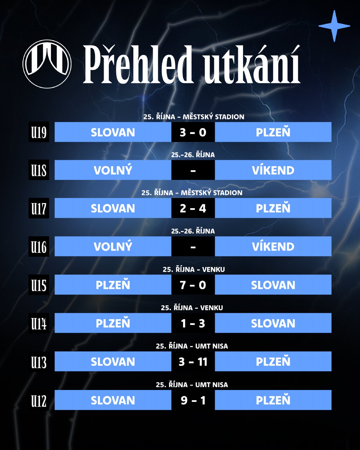 Uplynulý víkend naši mládežníci sehráli všechna mistrovská utkání proti jednomu soupeři. Jak extraligoví dorostenci tak všechny žákovské kategorie odehrály svá utkání proti Plzni. Divizní dorostenci, konkrétně kategorie U16 sehrála přípravné utkání proti Slavii. Mladší přípravka odehrála svůj první turnaj v Polsku.