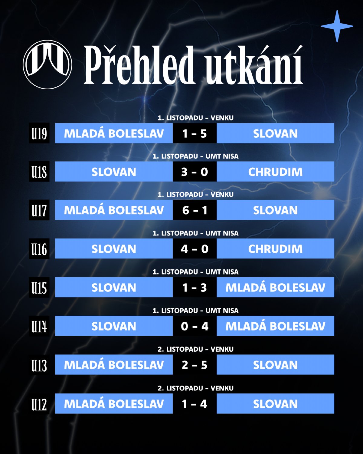Výsledkový přehled mládeže: Vysoké vítězství devatenáctky v Boleslavi!